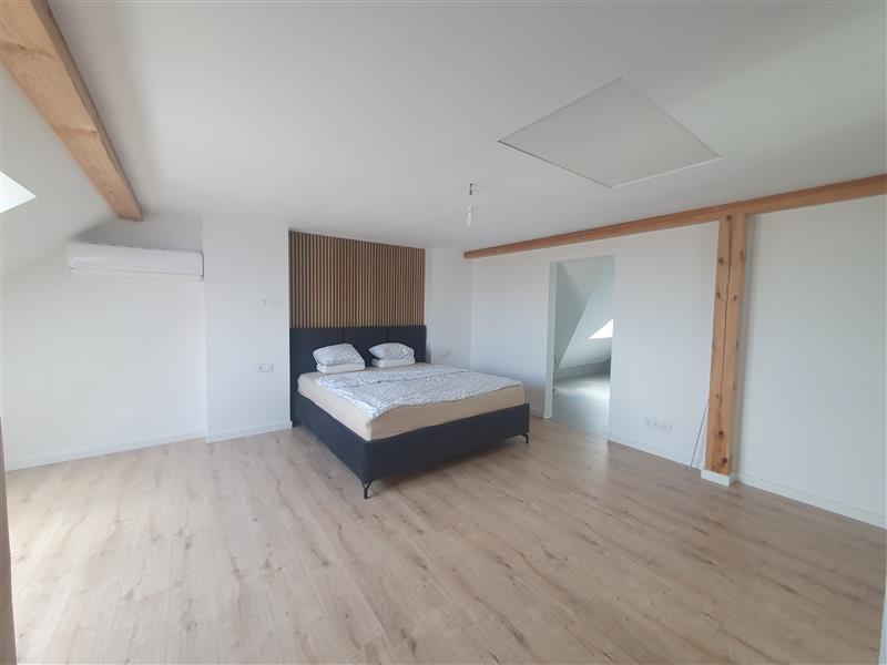 Piętro (poddasze) - pokój 27 m2, łazienka 6 m2, garderoba 3 m2, antresola 13,5 m2,